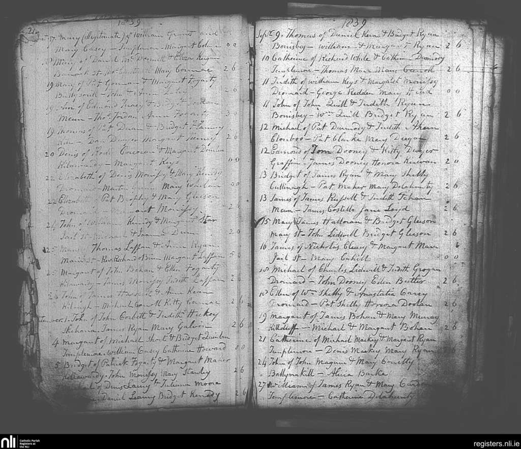 Templemore; County of Tipperary; Diocese of Cashel and Emly. Baptisms, Aug. 1839 to Sep. 1839
