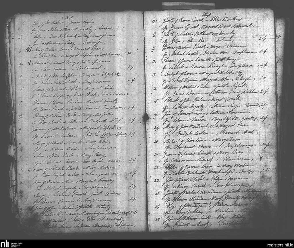 Templemore; County of Tipperary; Diocese of Cashel and Emly. Baptisms, Apr. 1840