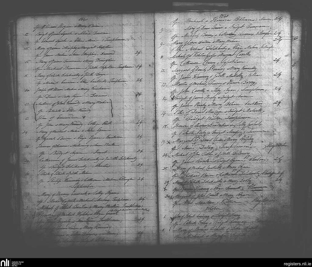 Templemore; County of Tipperary; Diocese of Cashel and Emly. Baptisms, Aug. 1840 to Oct. 1840