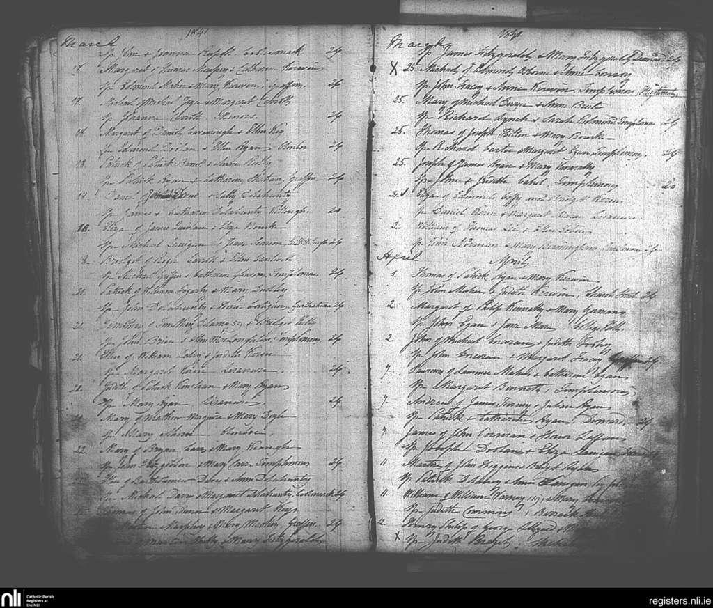 Templemore; County of Tipperary; Diocese of Cashel and Emly. Baptisms, Mar. 1841 to Apr. 1841