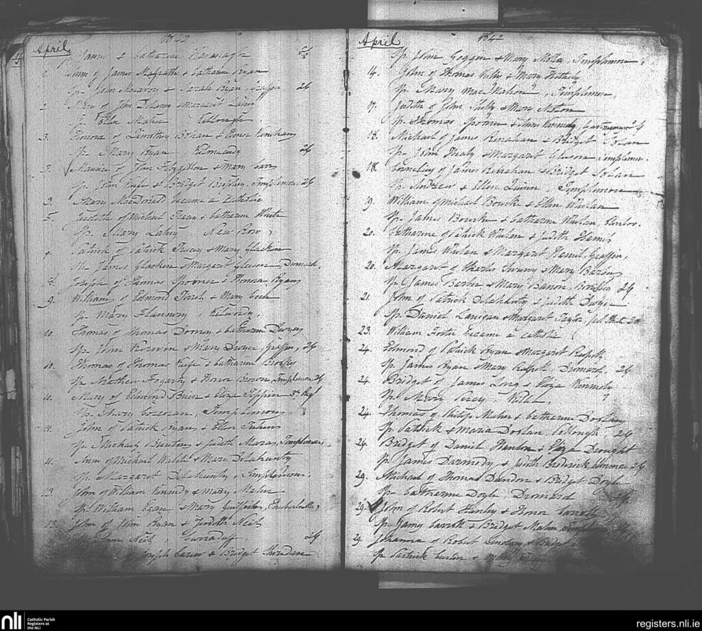 Templemore; County of Tipperary; Diocese of Cashel and Emly. Baptisms, Apr. 1842