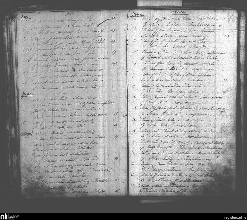Templemore; County of Tipperary; Diocese of Cashel and Emly. Baptisms, May 1842 to June 1842