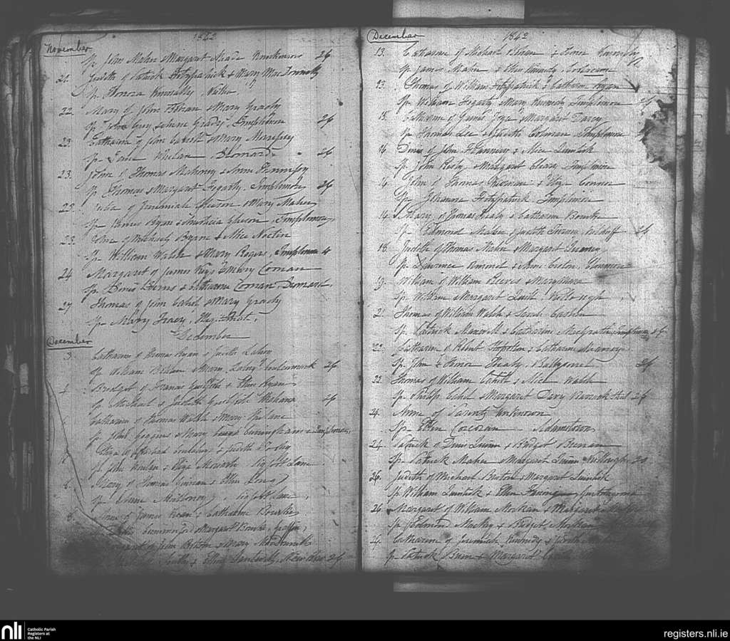 Templemore; County of Tipperary; Diocese of Cashel and Emly. Baptisms, Nov. 1842 to Dec. 1842