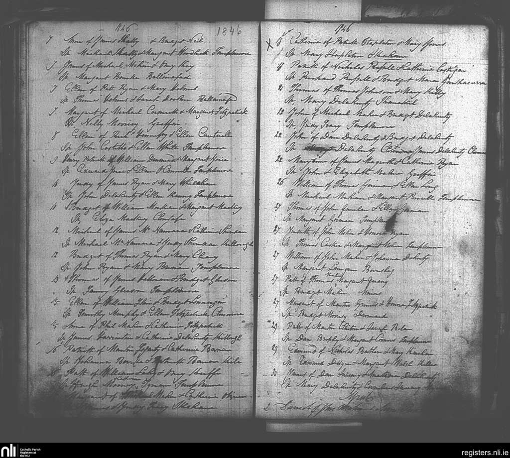 Templemore; County of Tipperary; Diocese of Cashel and Emly. Baptisms, Mar. 1846 to Apr. 1846