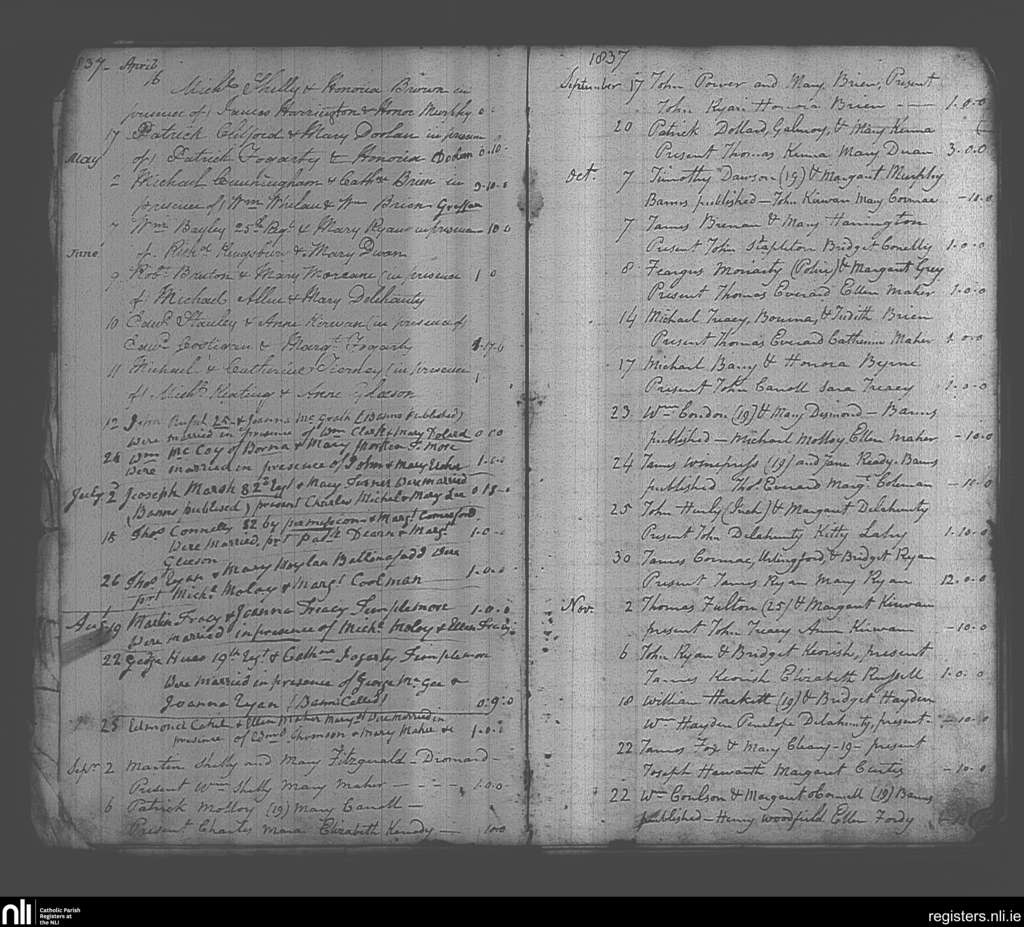 Templemore; County of Tipperary; Diocese of Cashel and Emly. Marriages, Apr. 1837 to Nov. 1837