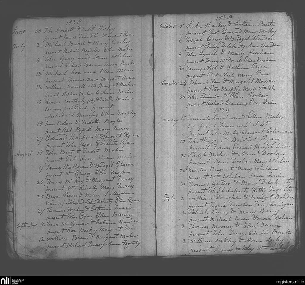Templemore; County of Tipperary; Diocese of Cashel and Emly. Marriages, June 1838 to Feb. 1839
