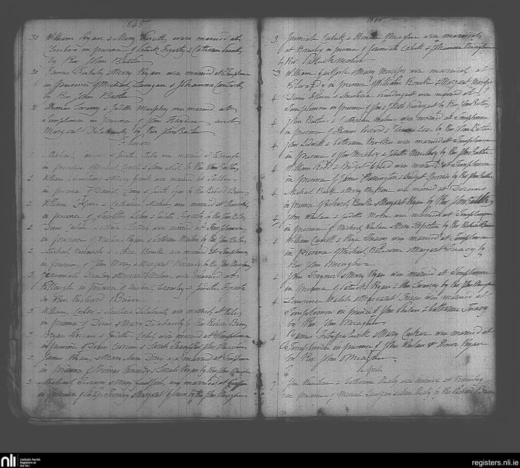 Templemore; County of Tipperary; Diocese of Cashel and Emly. Marriages, Jan. 1845 to Apr. 1845