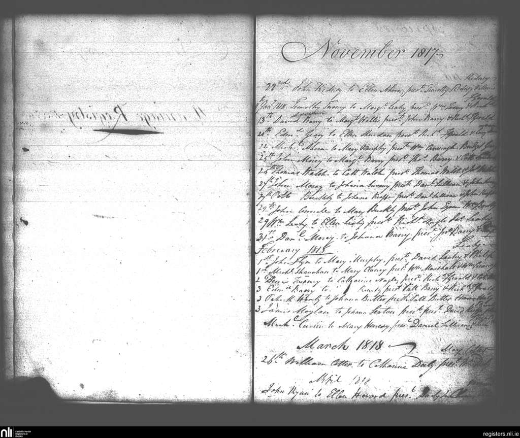 Carrigtohill; County of Cork; Diocese of Cloyne. Marriages, Nov. 1817 to Apr. 1818