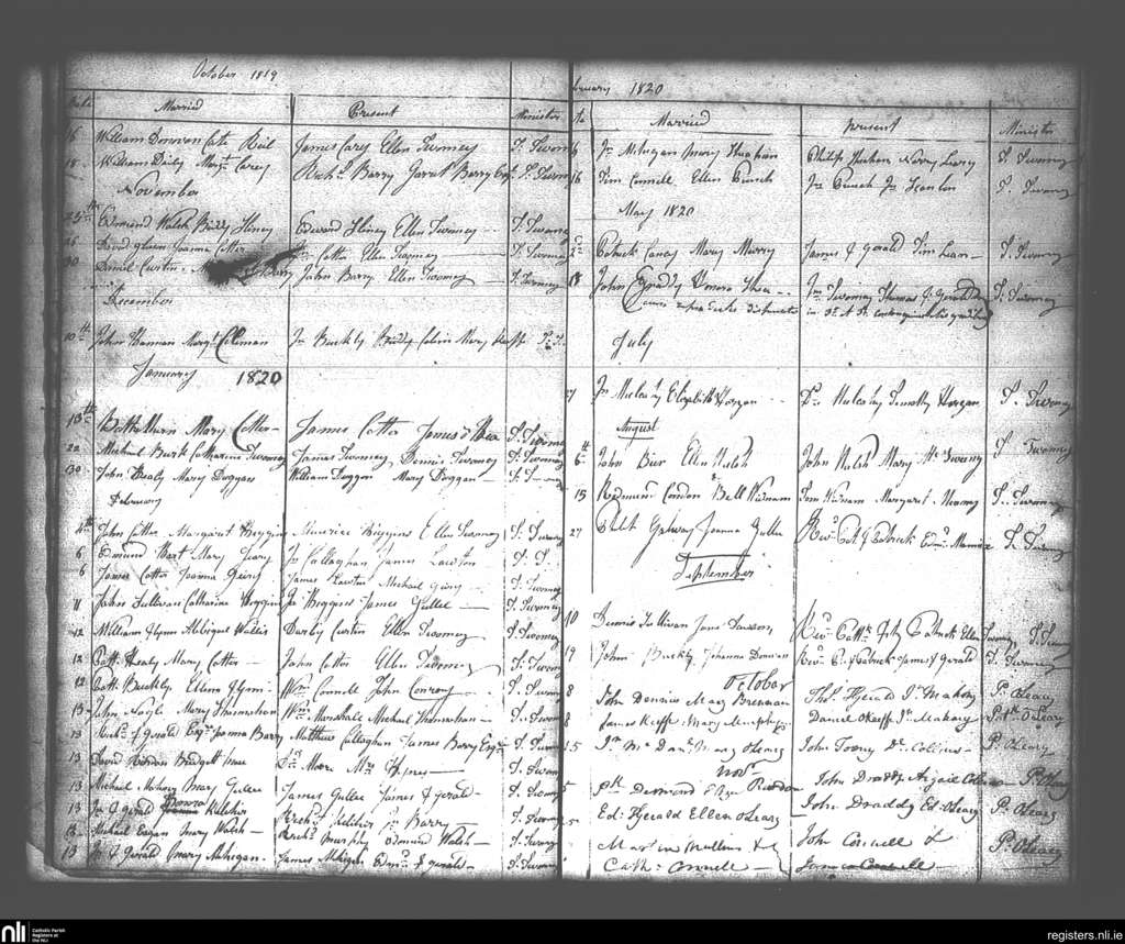 Carrigtohill; County of Cork; Diocese of Cloyne. Marriages, Oct. 1819 to Nov. 1820