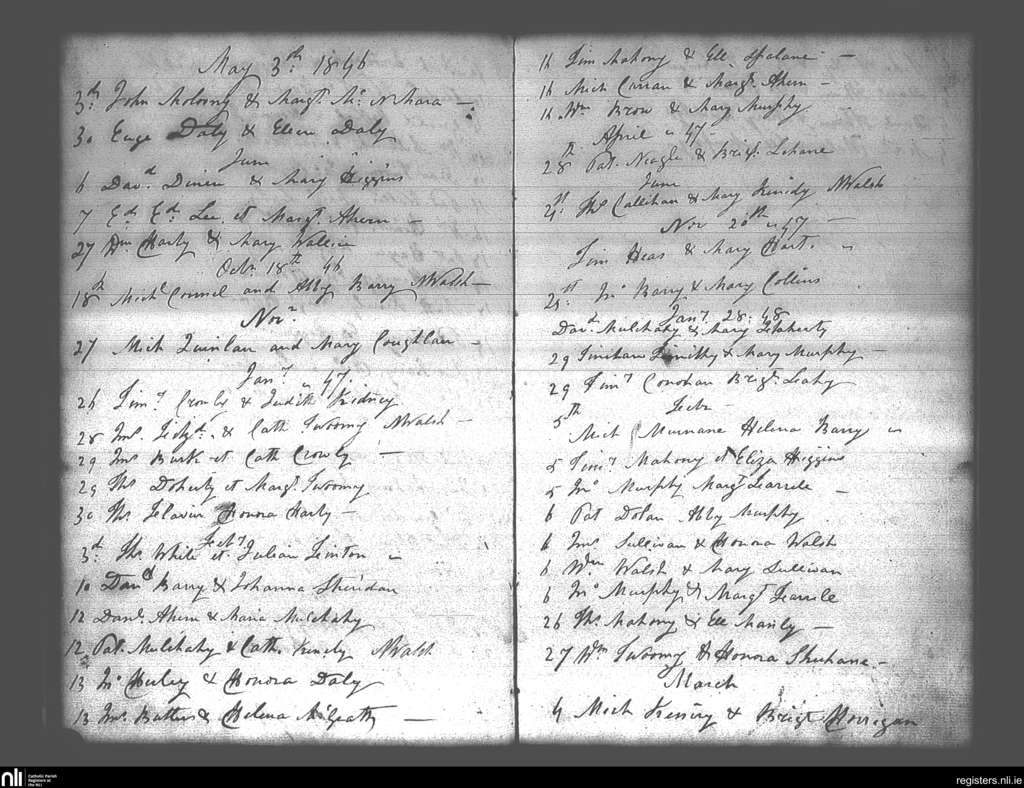 Carrigtohill; County of Cork; Diocese of Cloyne. Marriages, May 1846 to Mar. 1848
