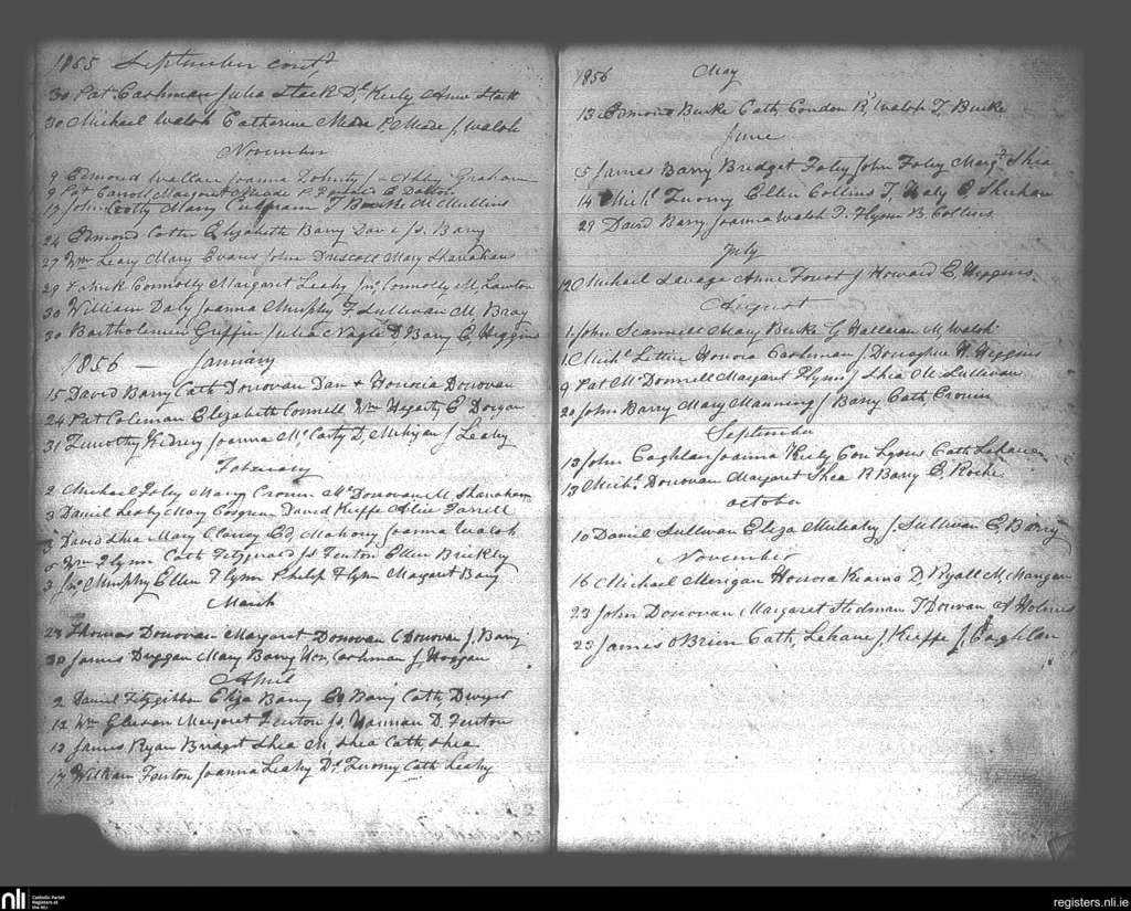 Carrigtohill; County of Cork; Diocese of Cloyne. Marriages, Sep. 1855 to Nov. 1856