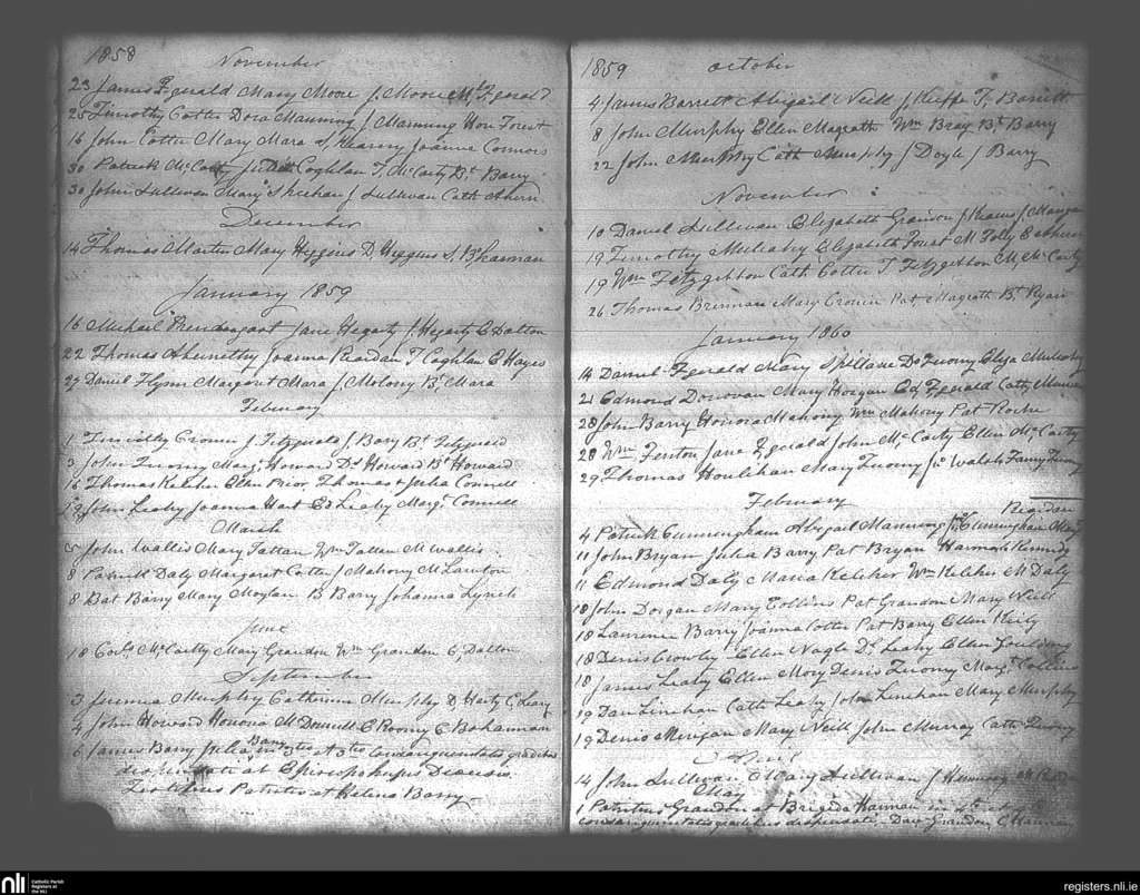 Carrigtohill; County of Cork; Diocese of Cloyne. Marriages, Nov. 1858 to May 1860