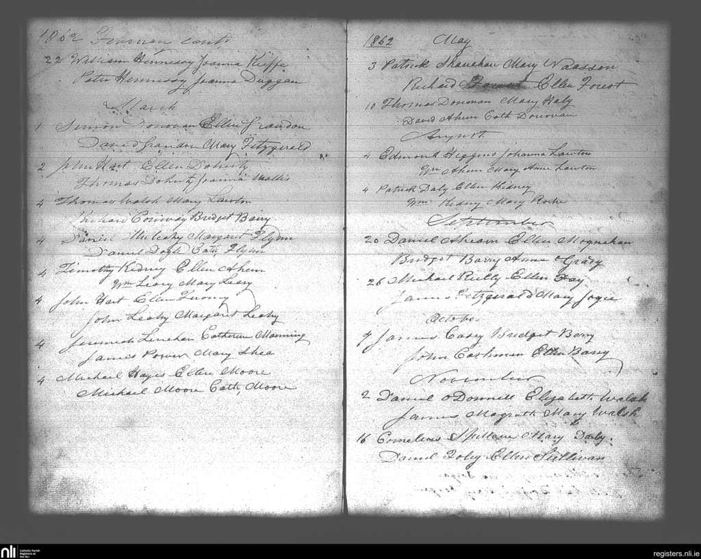 Carrigtohill; County of Cork; Diocese of Cloyne. Marriages, Feb. 1862 to Nov. 1862