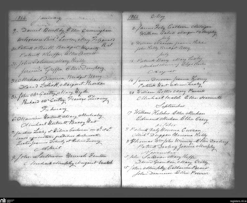 Carrigtohill; County of Cork; Diocese of Cloyne. Marriages, Jan. 1864 to Nov. 1864