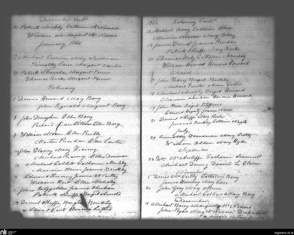 Carrigtohill; County of Cork; Diocese of Cloyne. Marriages, Dec. 1865 to Dec. 1866