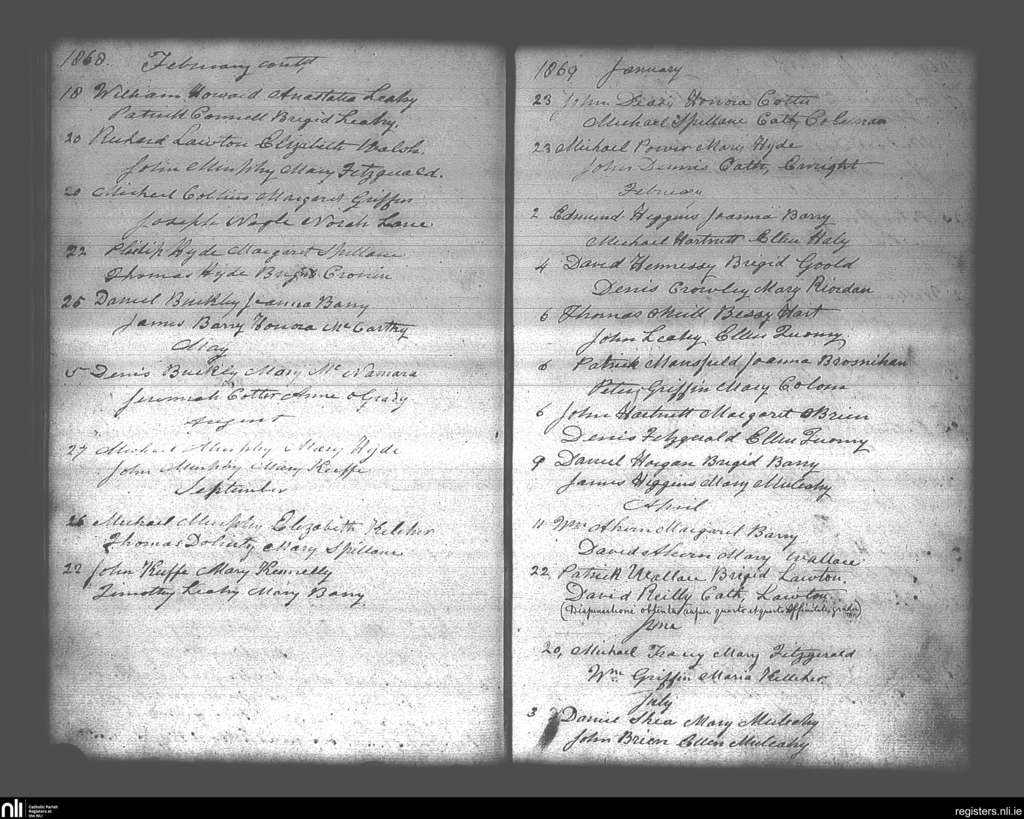 Carrigtohill; County of Cork; Diocese of Cloyne. Marriages, Feb. 1868 to July 1869