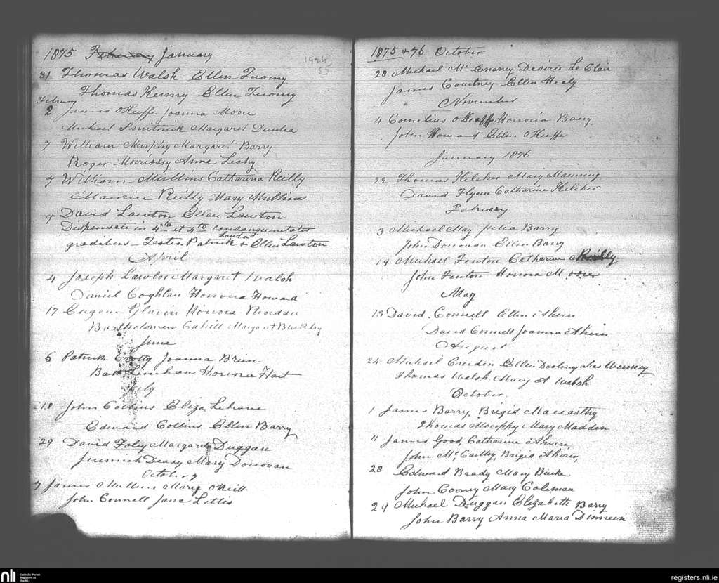 Carrigtohill; County of Cork; Diocese of Cloyne. Marriages, Jan. 1875 to Oct. 1876