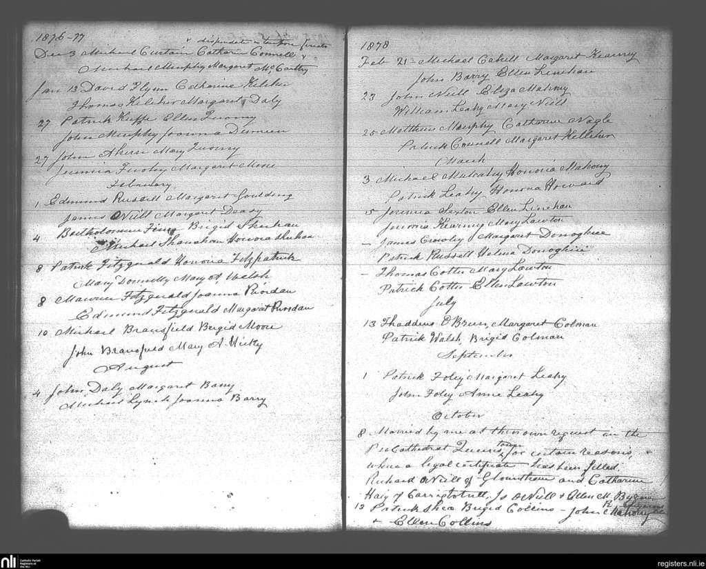 Carrigtohill; County of Cork; Diocese of Cloyne. Marriages, Dec. 1876 to Oct. 1878