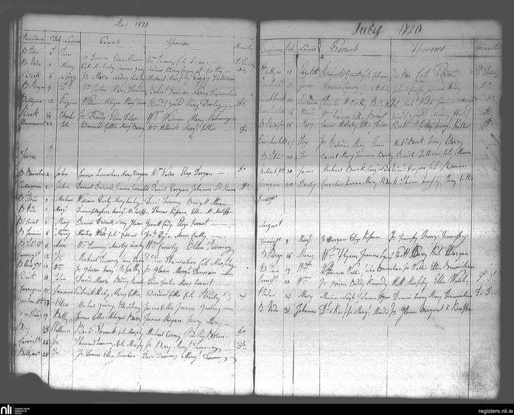 Carrigtohill; County of Cork; Diocese of Cloyne. Baptisms, May 1820 to Aug. 1820