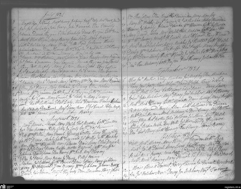 Carrigtohill; County of Cork; Diocese of Cloyne. Baptisms, July 1821 to Oct. 1821