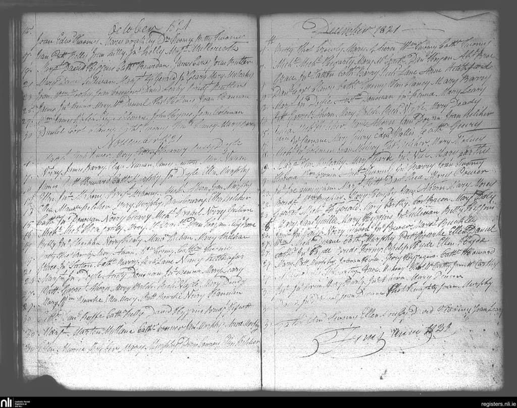 Carrigtohill; County of Cork; Diocese of Cloyne. Baptisms, Oct. 1821 to Dec. 1821