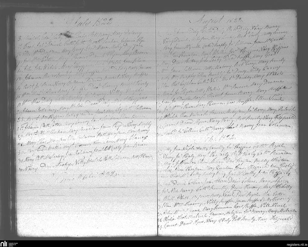 Carrigtohill; County of Cork; Diocese of Cloyne. Baptisms, July 1822 to Sep. 1822