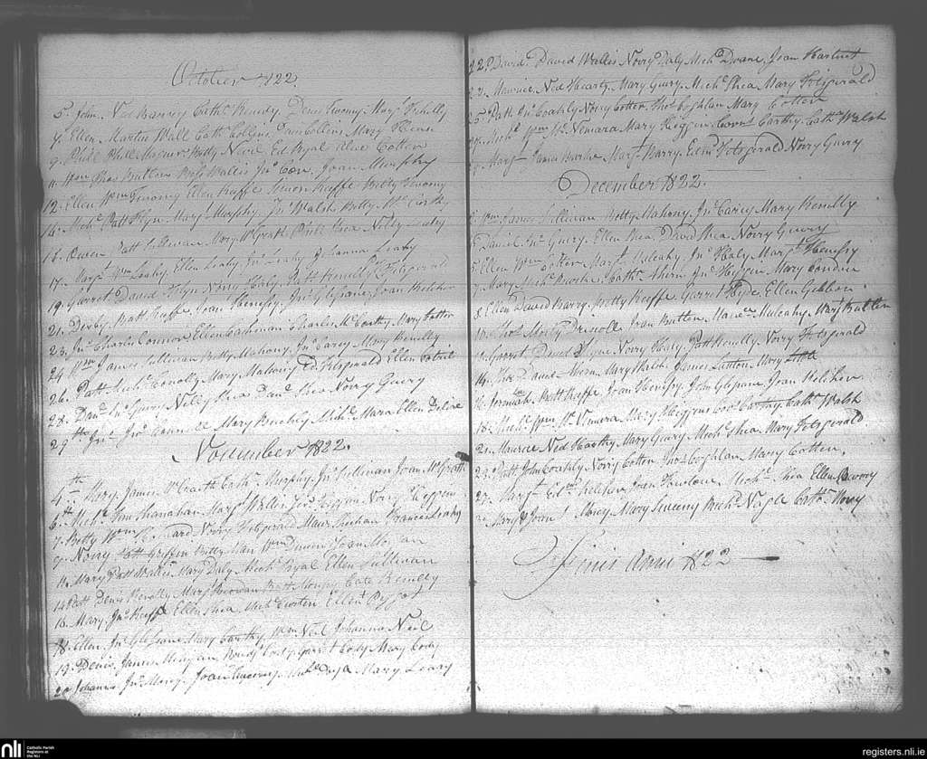 Carrigtohill; County of Cork; Diocese of Cloyne. Baptisms, Oct. 1822 to Dec. 1822