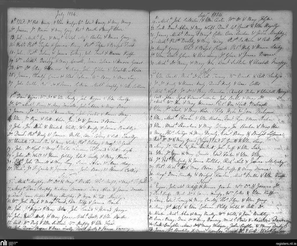 Carrigtohill; County of Cork; Diocese of Cloyne. Baptisms, July 1824 to Nov. 1824