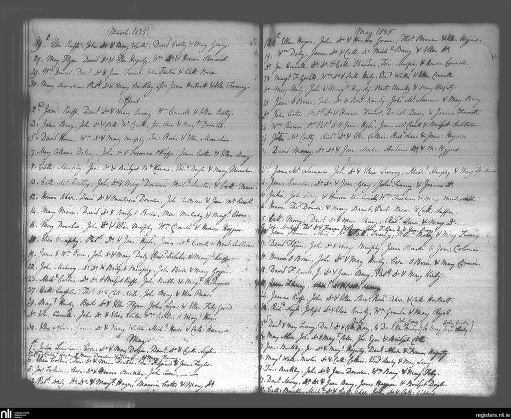 Carrigtohill; County of Cork; Diocese of Cloyne. Baptisms, Mar. 1825 to July 1825
