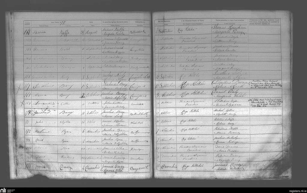Carrigtohill; County of Cork; Diocese of Cloyne. Baptisms, Sep. 1875 to Dec. 1875