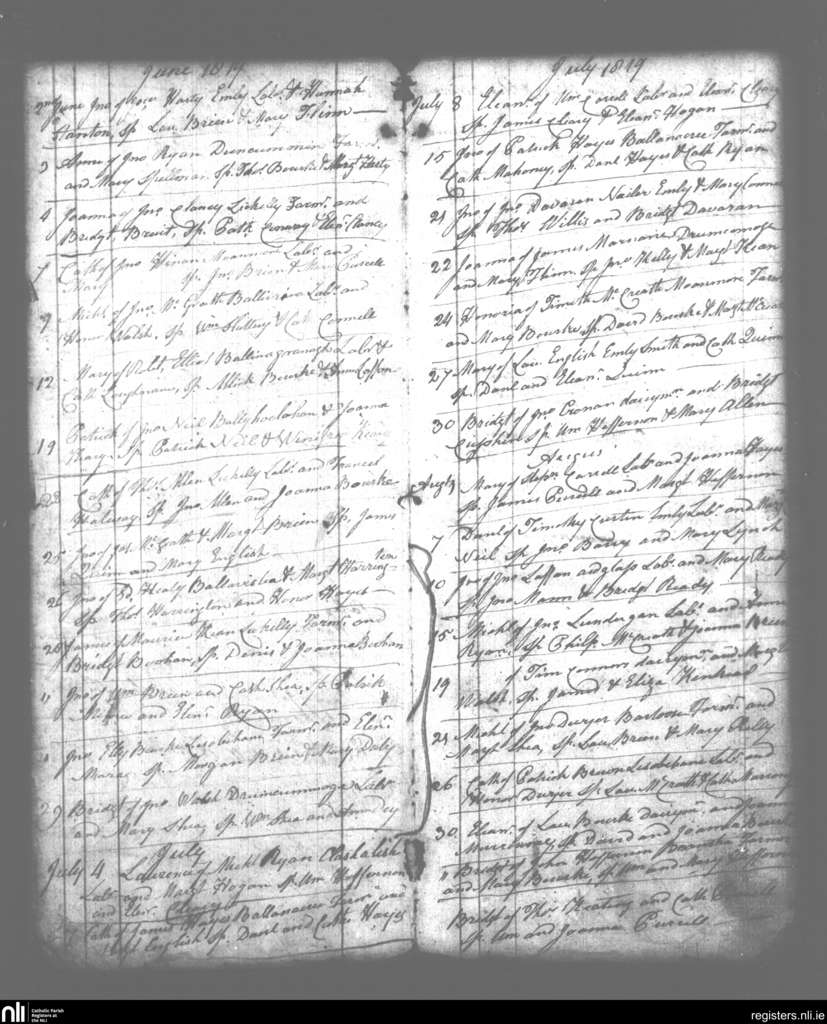 Emly; County of Tipperary, Limerick; Diocese of Cashel and Emly. Baptisms, June 1819 to Aug. 1819