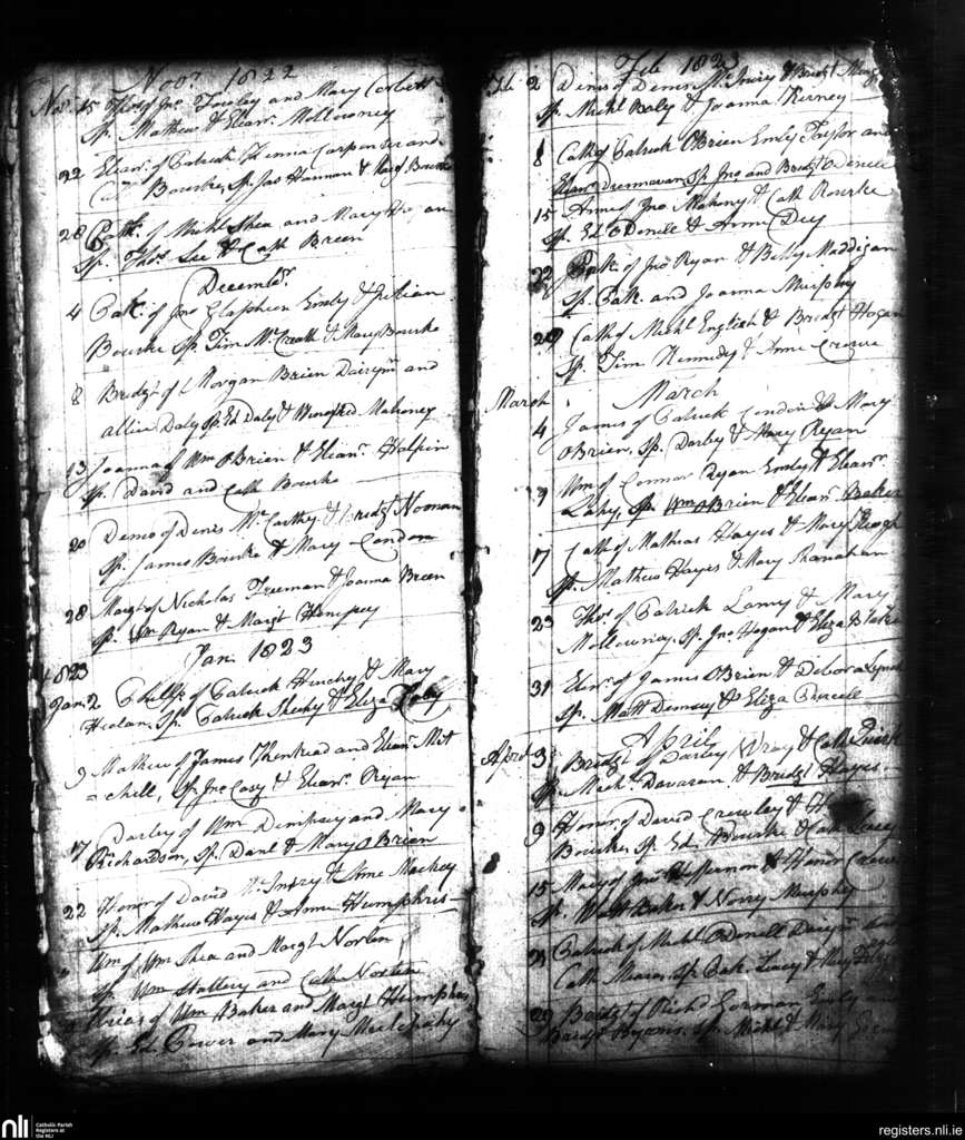 Emly; County of Tipperary, Limerick; Diocese of Cashel and Emly. Baptisms, Nov. 1822 to Apr. 1823