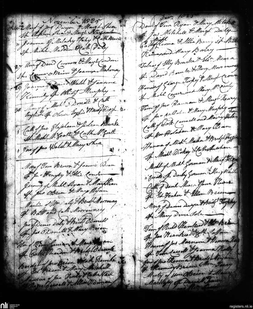 Emly; County of Tipperary, Limerick; Diocese of Cashel and Emly. Baptisms, Nov. 1825 to Dec. 1825
