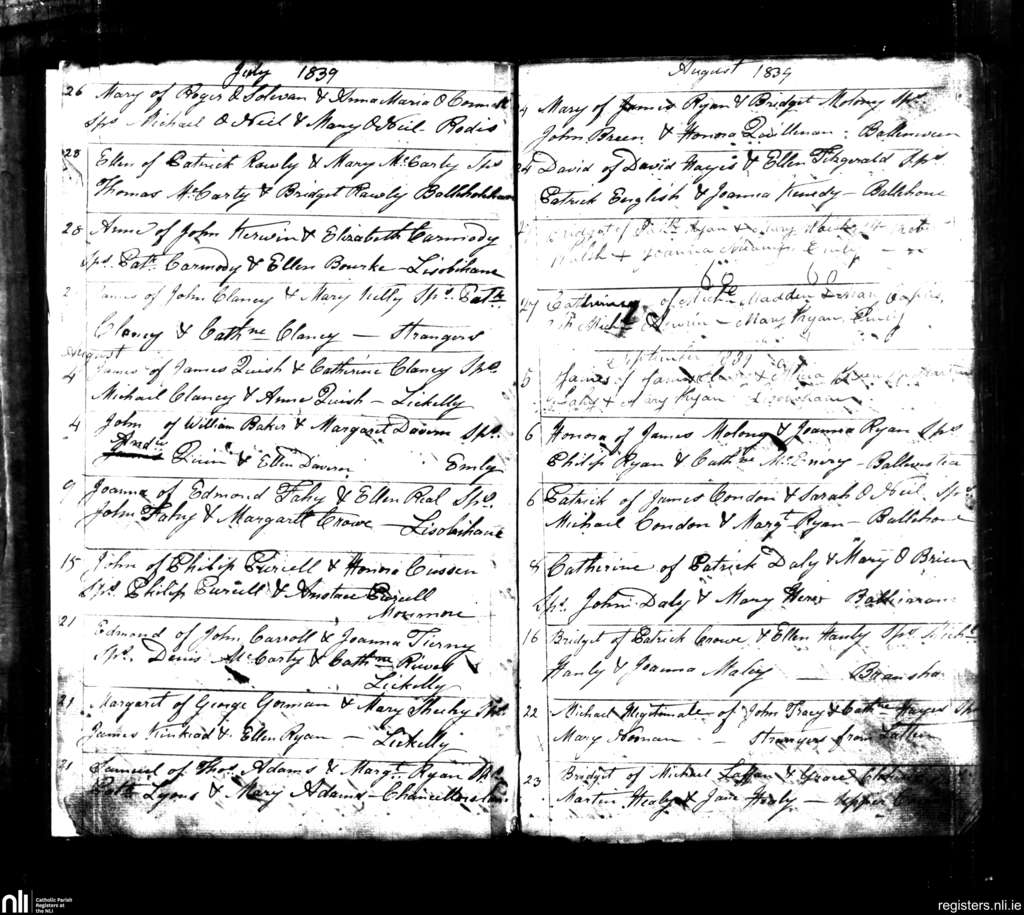 Emly; County of Tipperary, Limerick; Diocese of Cashel and Emly. Baptisms, July 1839 to Sep. 1839