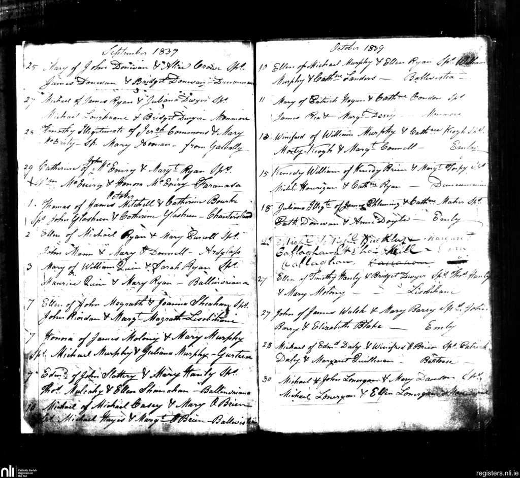 Emly; County of Tipperary, Limerick; Diocese of Cashel and Emly. Baptisms, Sep. 1839 to Oct. 1839