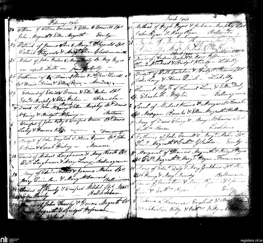 Emly; County of Tipperary, Limerick; Diocese of Cashel and Emly. Baptisms, Feb. 1840 to Apr. 1840