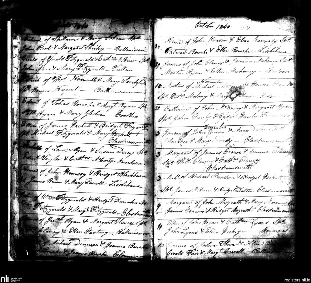 Emly; County of Tipperary, Limerick; Diocese of Cashel and Emly. Baptisms, Sep. 1840 to Dec. 1840