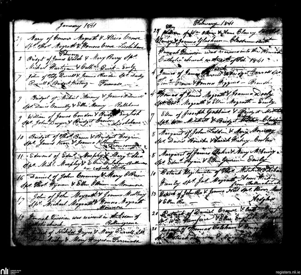 Emly; County of Tipperary, Limerick; Diocese of Cashel and Emly. Baptisms, Jan. 1841 to Mar. 1841