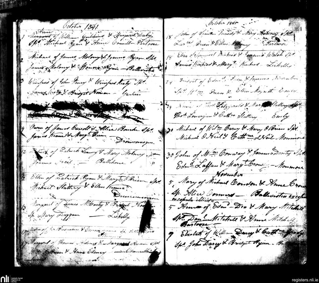Emly; County of Tipperary, Limerick; Diocese of Cashel and Emly. Baptisms, Oct. 1841 to Nov. 1841