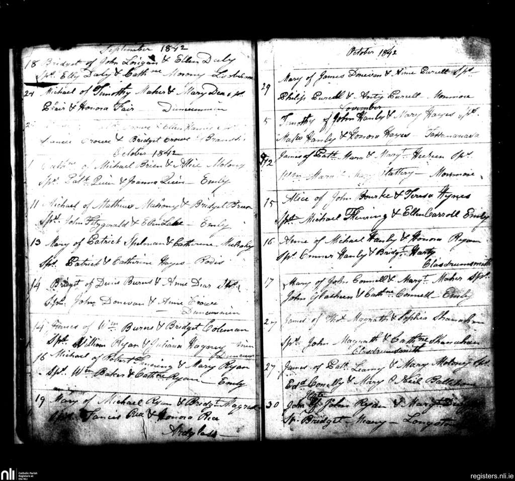 Emly; County of Tipperary, Limerick; Diocese of Cashel and Emly. Baptisms, Sep. 1842 to Nov. 1842