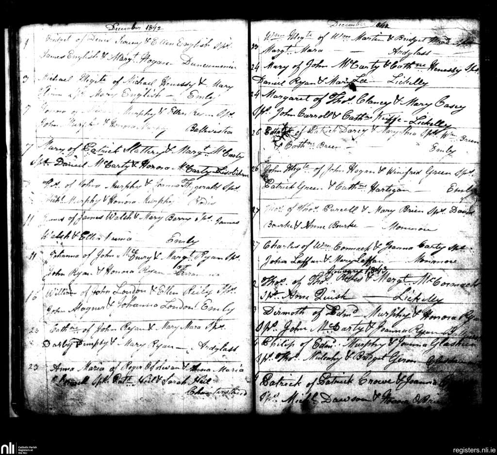 Emly; County of Tipperary, Limerick; Diocese of Cashel and Emly. Baptisms, Dec. 1842 to Jan. 1843