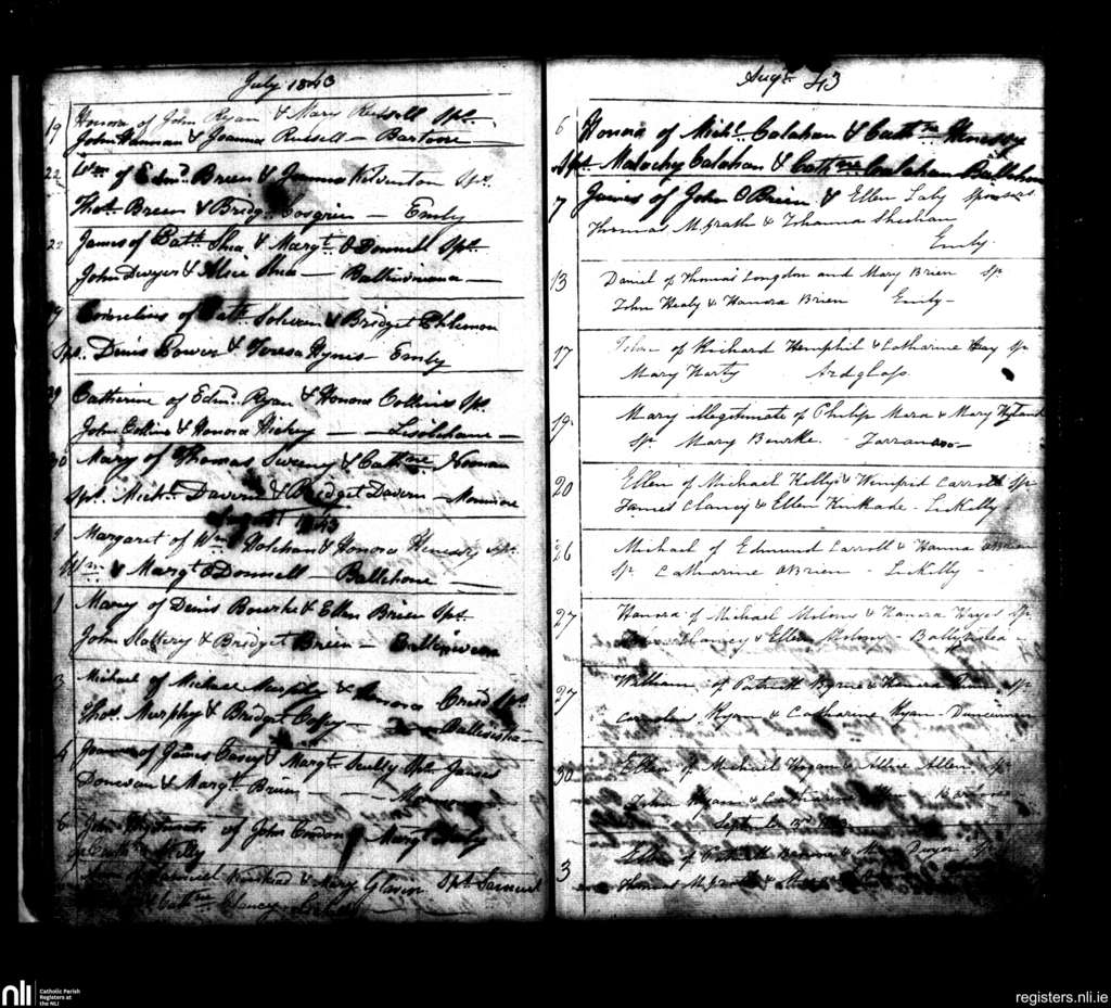 Emly; County of Tipperary, Limerick; Diocese of Cashel and Emly. Baptisms, July 1843 to Sep. 1843