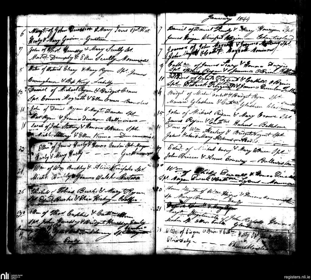 Emly; County of Tipperary, Limerick; Diocese of Cashel and Emly. Baptisms, Dec. 1843 to Jan. 1844