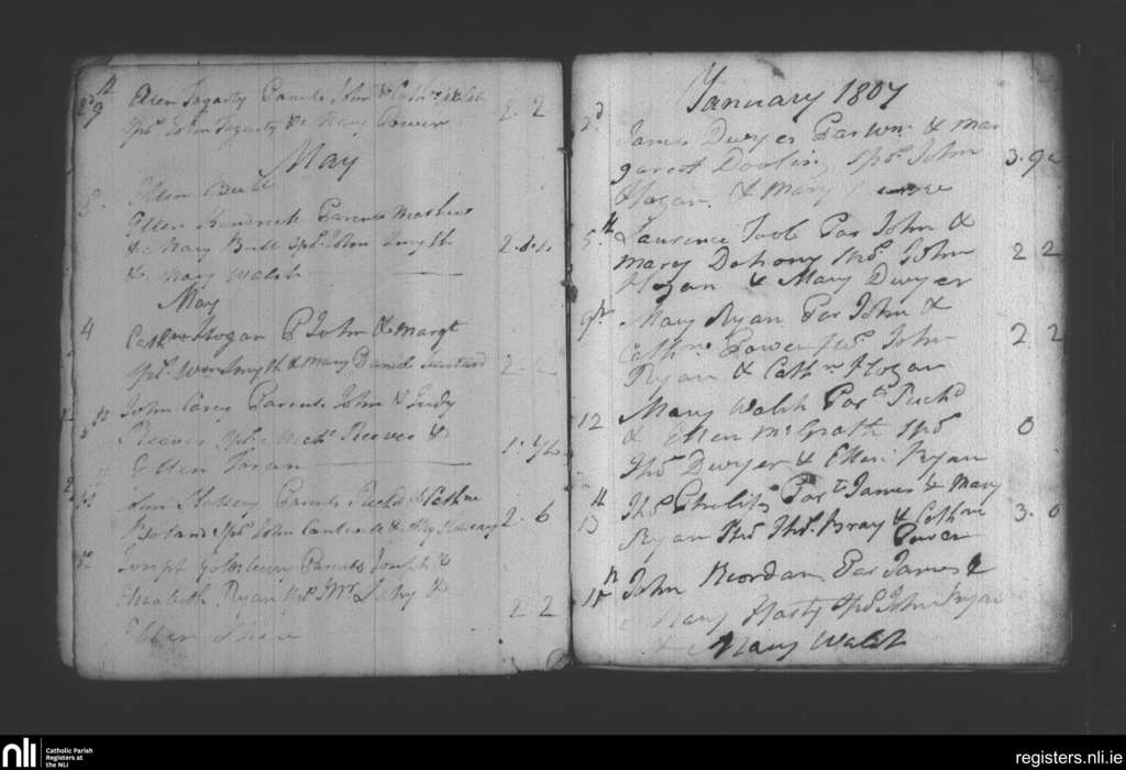 Fethard; County of Tipperary; Diocese of Cashel and Emly. Baptisms, Apr. 1806 to Jan. 1807