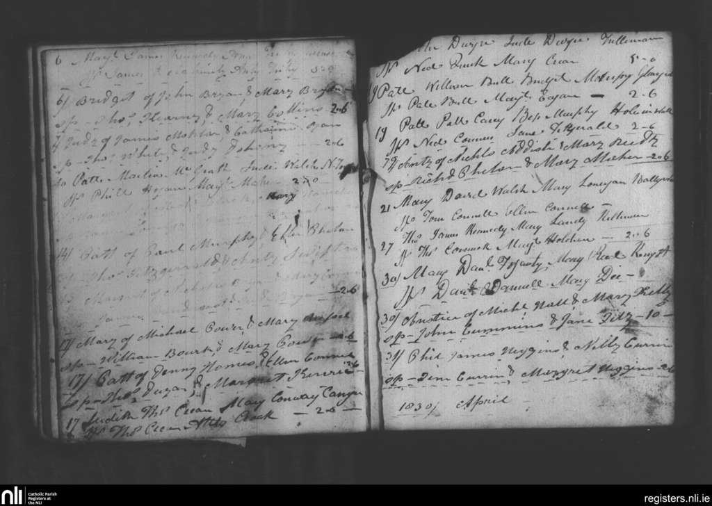 Fethard; County of Tipperary; Diocese of Cashel and Emly. Baptisms, Mar. 1830 to Apr. 1830