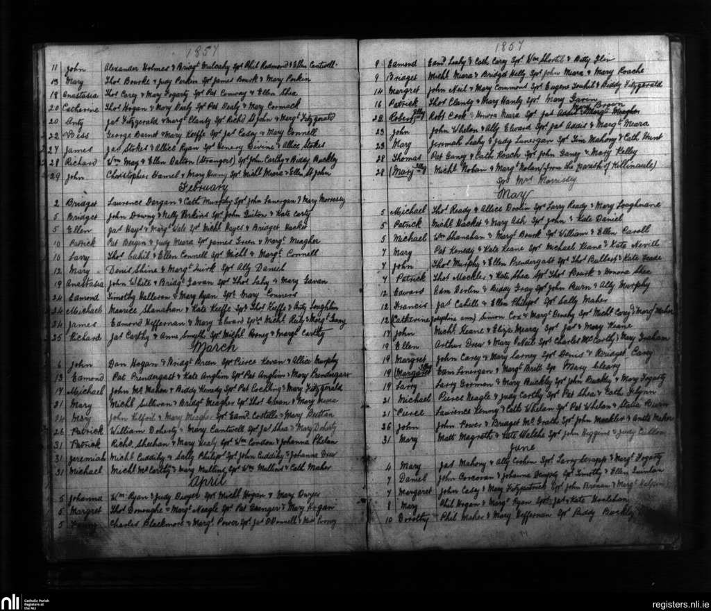 Fethard; County of Tipperary; Diocese of Cashel and Emly. Baptisms, Jan. 1857 to June 1857
