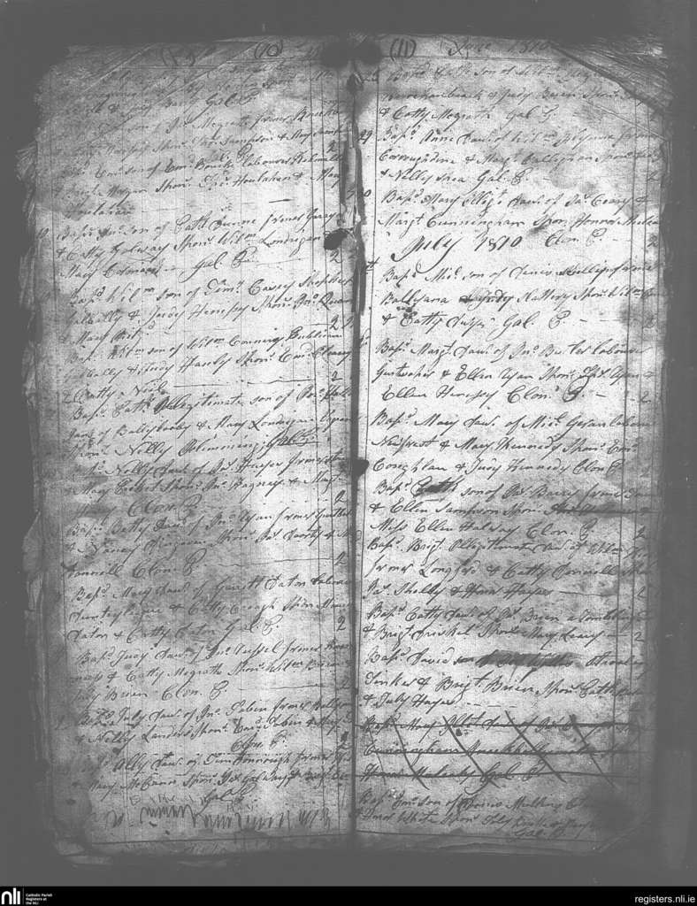 Galbally and Aherlow; County of Limerick, Tipperary; Diocese of Cashel and Emly. Baptisms, June 1810 to July 1810