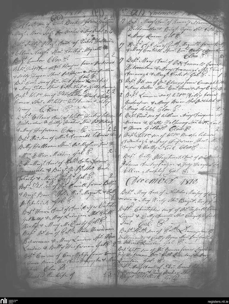 Galbally and Aherlow; County of Limerick, Tipperary; Diocese of Cashel and Emly. Baptisms, Nov. 1810 to Dec. 1810
