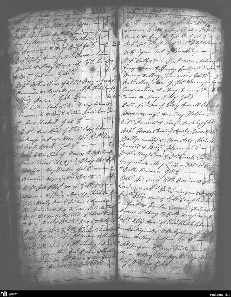 Galbally and Aherlow; County of Limerick, Tipperary; Diocese of Cashel and Emly. Baptisms, May 1811 to June 1811