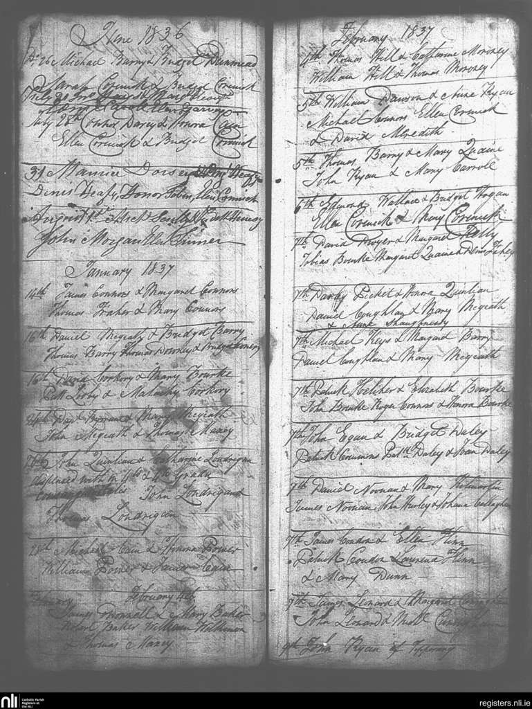 Galbally and Aherlow; County of Limerick, Tipperary; Diocese of Cashel and Emly. Marriages, June 1836 to Feb. 1837